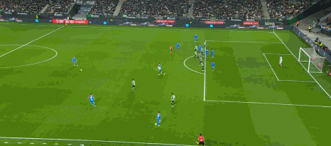 第16分钟,不应该,卢克曼单刀低射偏出