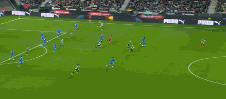 第16分钟,不应该,卢克曼单刀低射偏出
